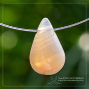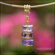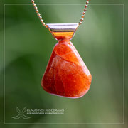 Am 9.9.2016 = 3 x 9, entstand dieser handgearbeitete Kupferanhänger mit kleiner Onyx- und Rosenquarzkugel.